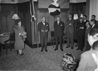De heer mr. L.A. Kesper houdt een toespraak bij zijn...