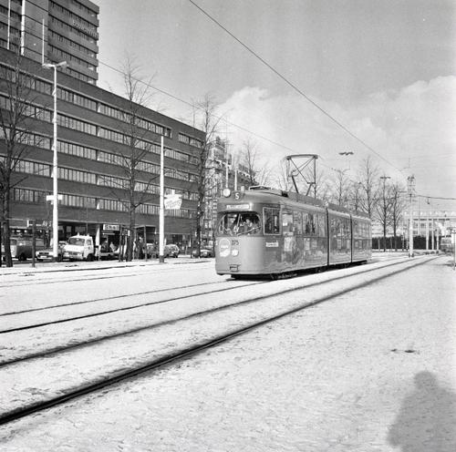Rotterdam, Kruisplein, met RET tram in de sneeuw