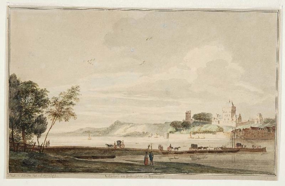 Gezicht vanaf Lent op Valkhof en Belvedere en het oo...