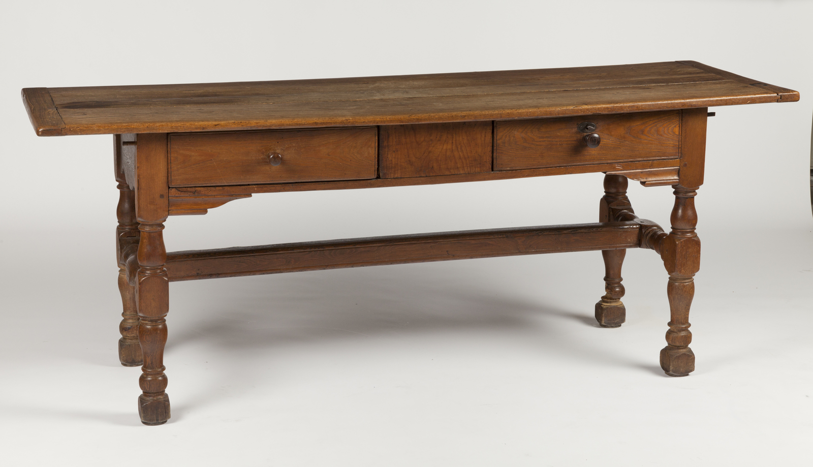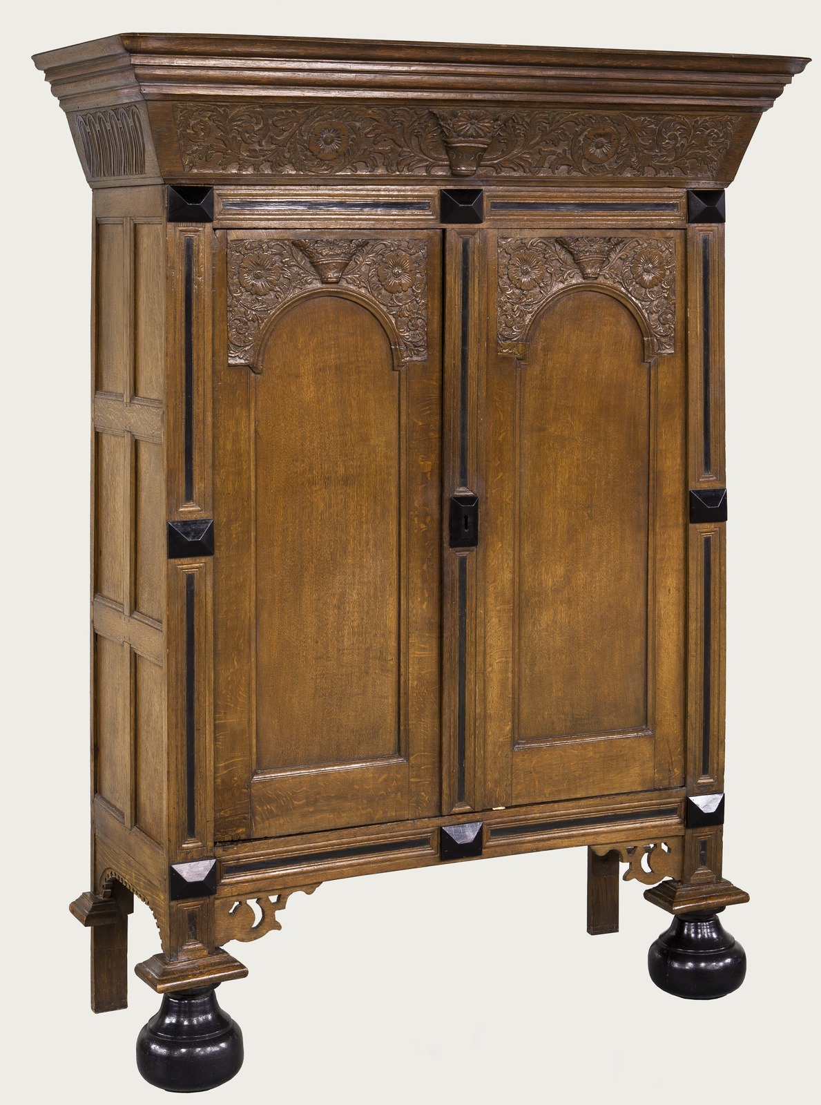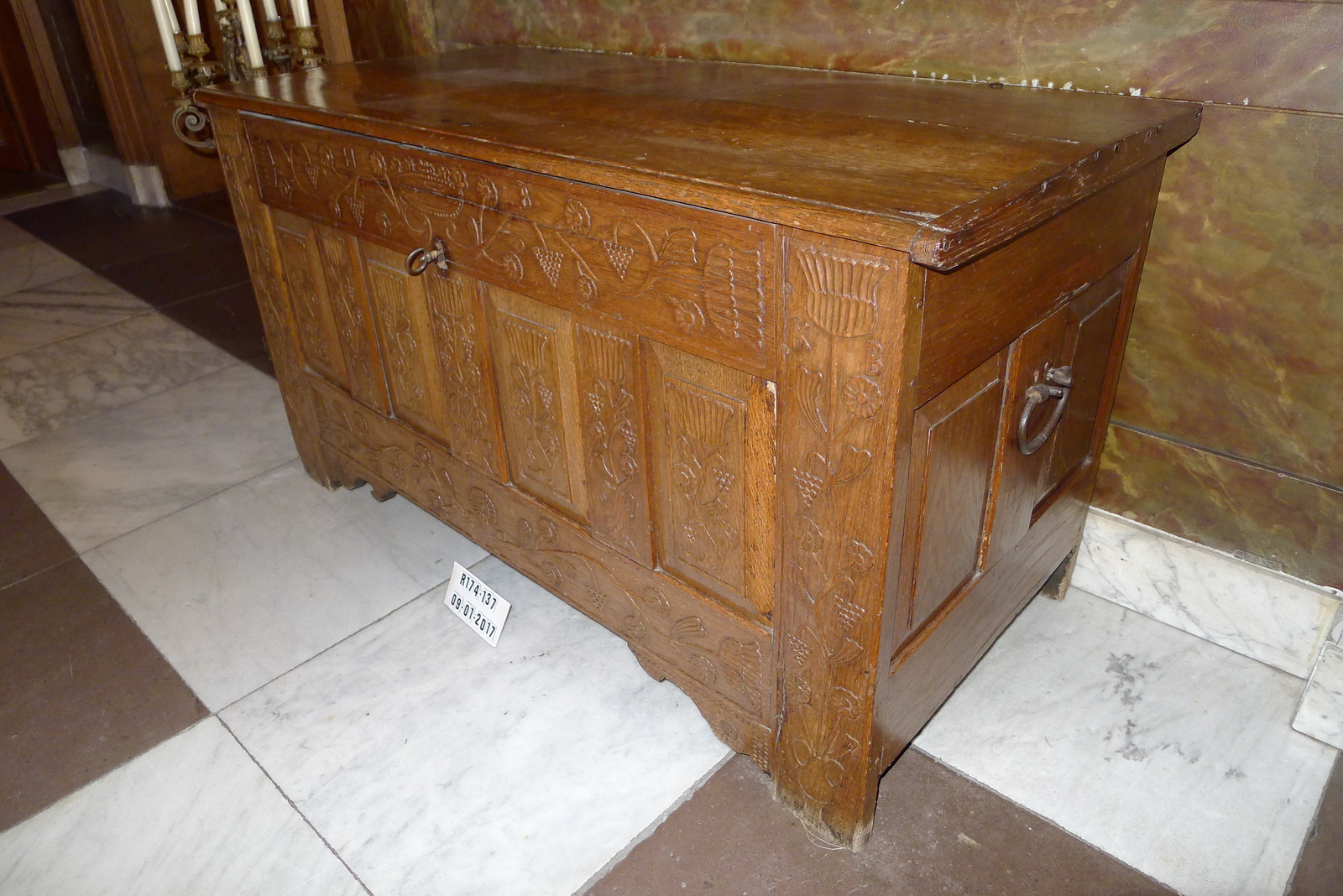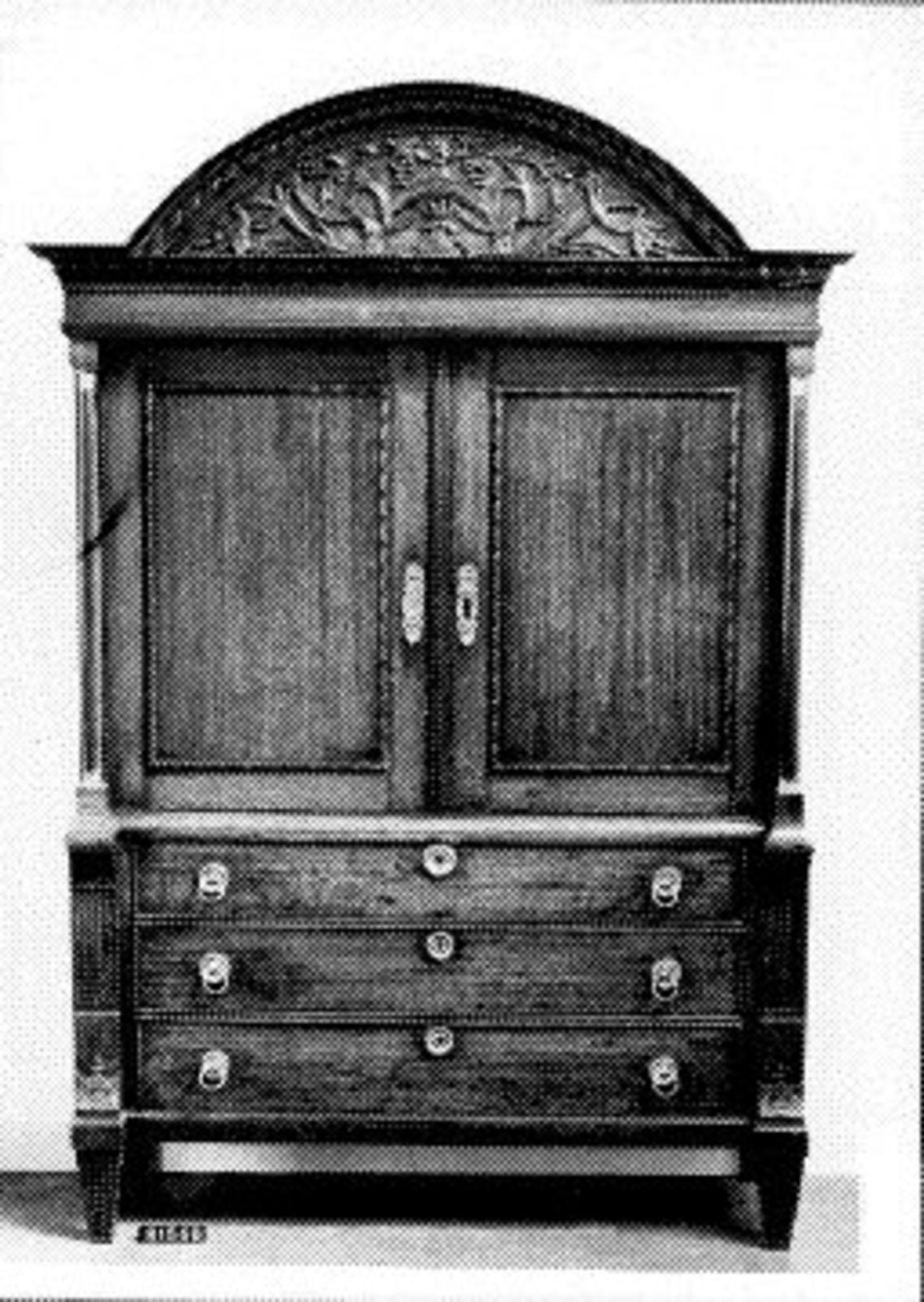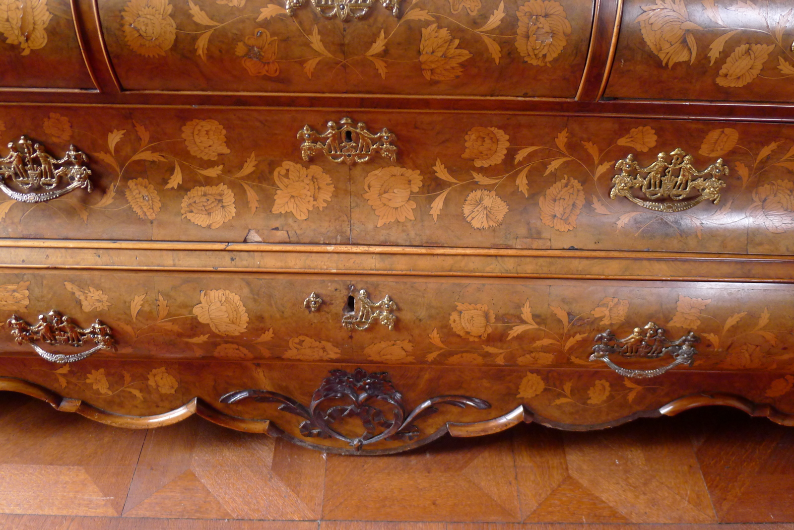diverse houtsoorten belijmd met padoek- en cederhout, versierd met beschilderde wit marmeren plaquettes (1)