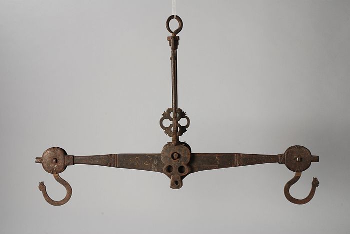 Gesmeed ijzeren beltrekker, druppelvormig met haak e...