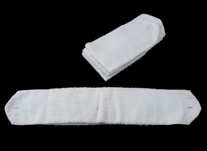 Langwerpig badstof maandverband, vier stuks, aan de ...