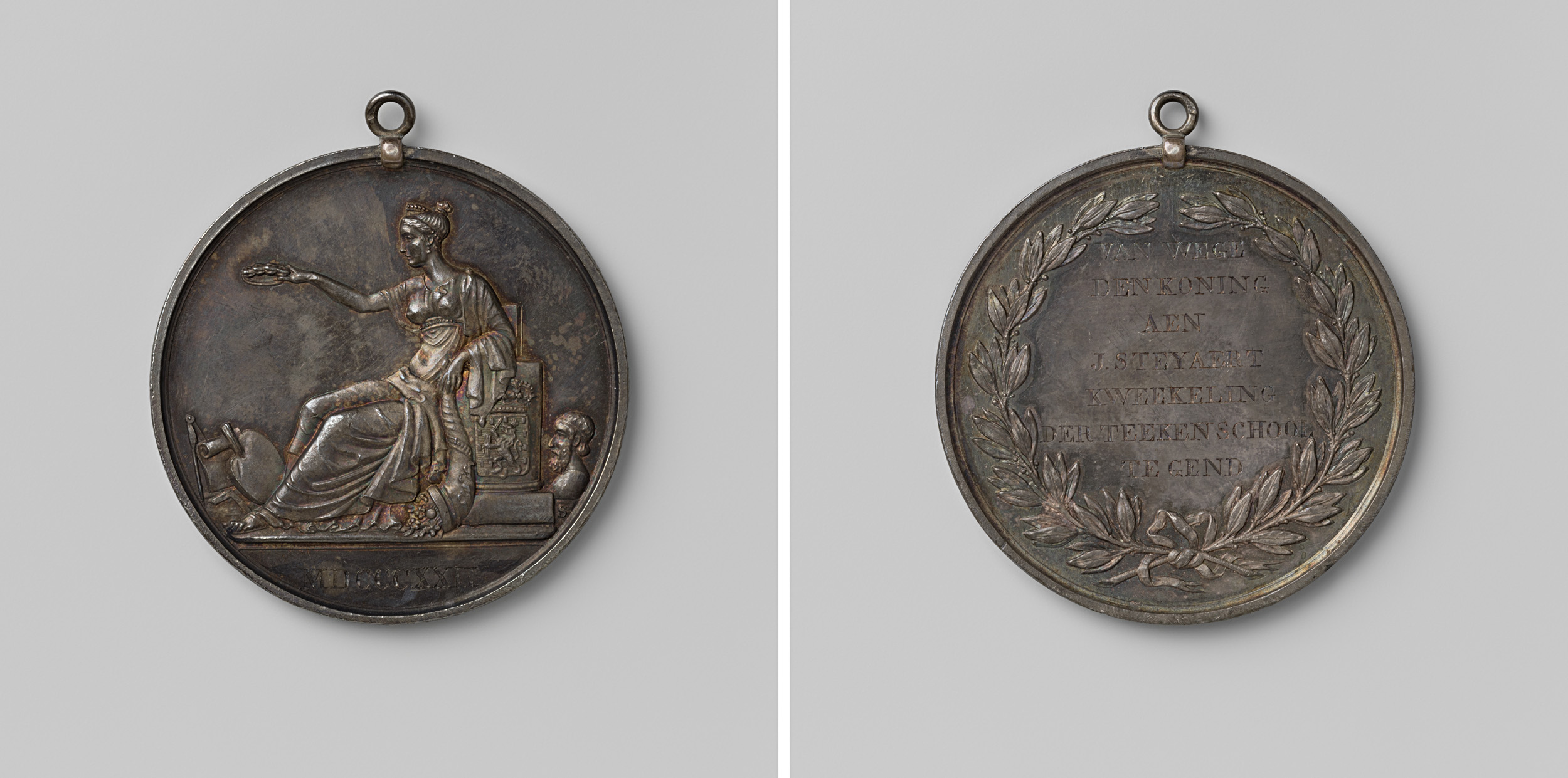 Tekenschool te Gent, penning uitgereikt aan de kweke...