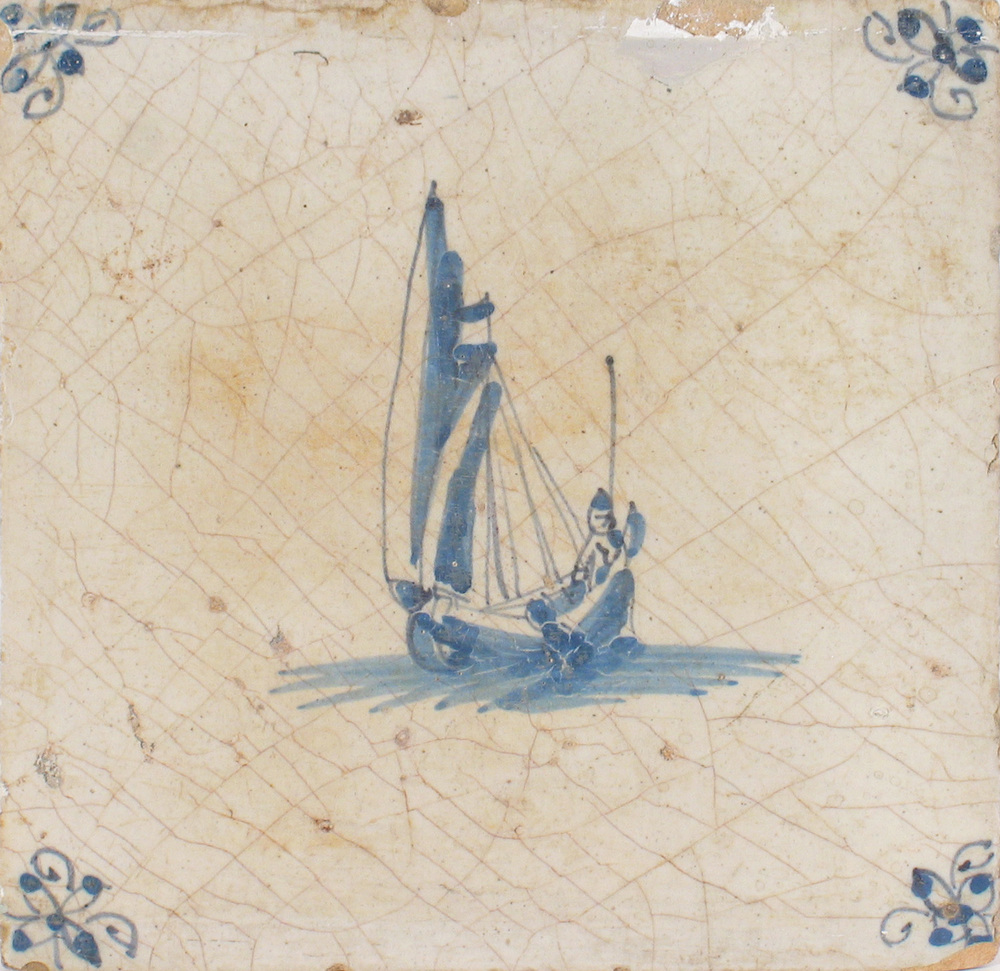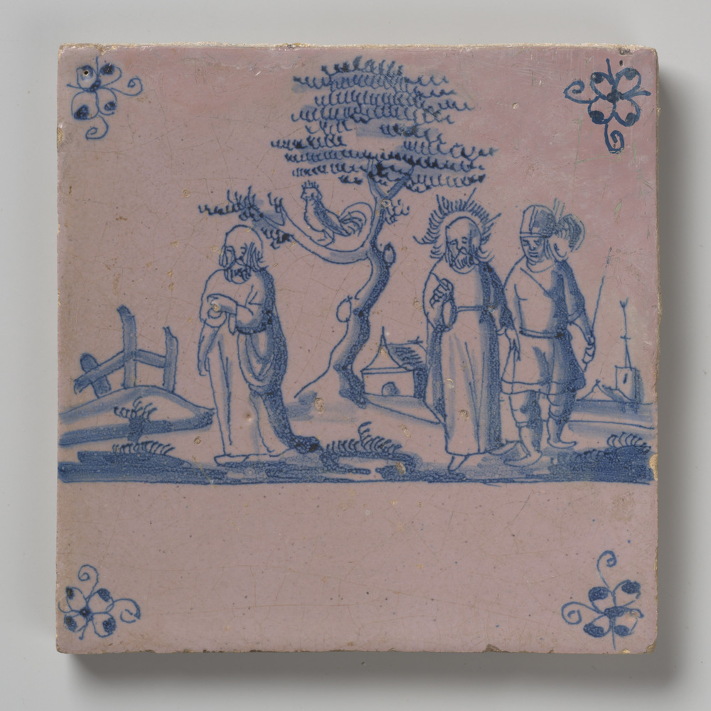 tegel van aardewerk met tinglazuur, voorstellende: P...