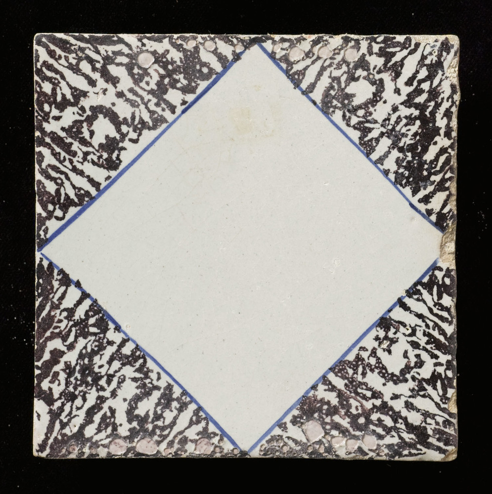 Tegel in tinglazuur, voorstellende decor 'Getippelde...