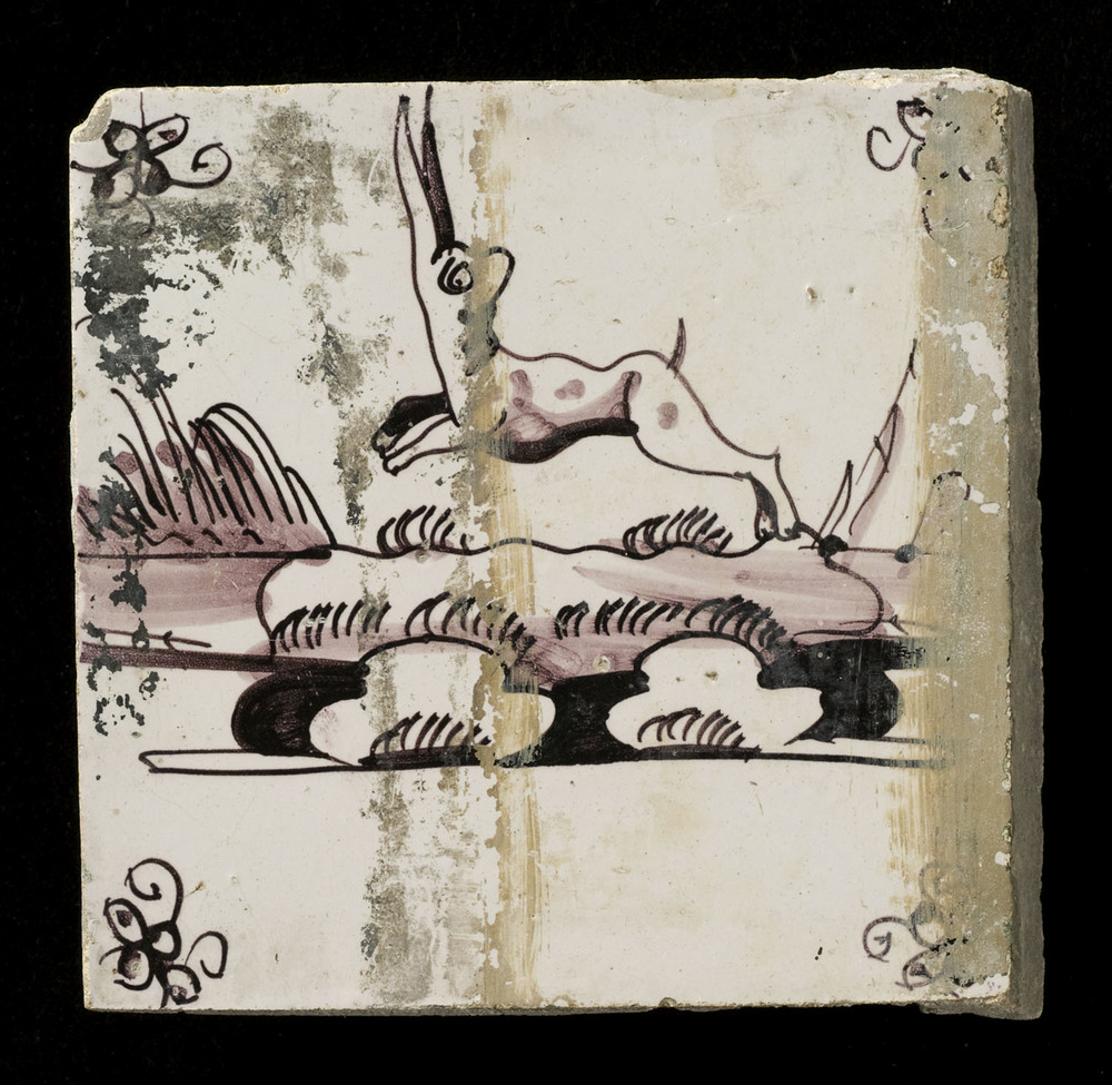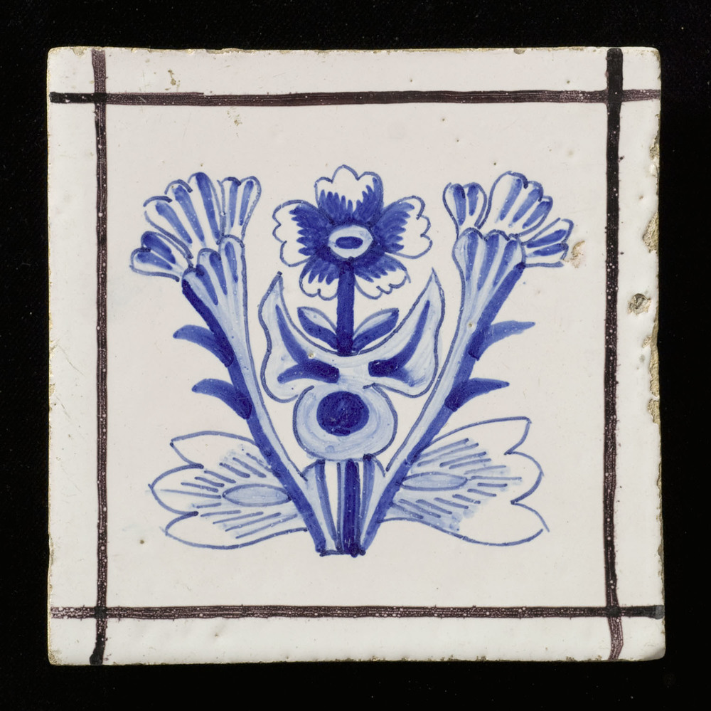 Tegel van keramiek, tinglazuur, waarschijnlijk gemaa...