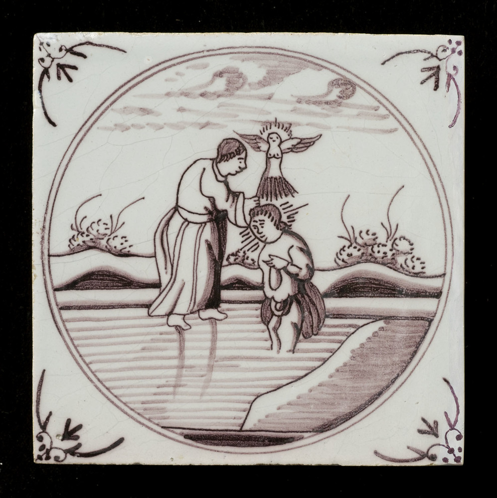 Tegel van aardewerk met tinglazuur, met bijbelse voo...