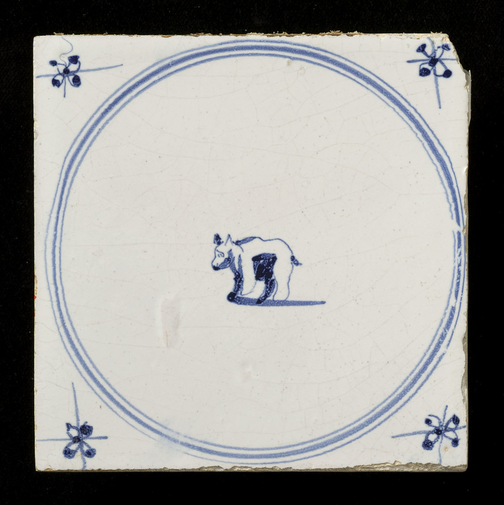 tegel van aardewerk in tinglazuur, voorstellende: la...