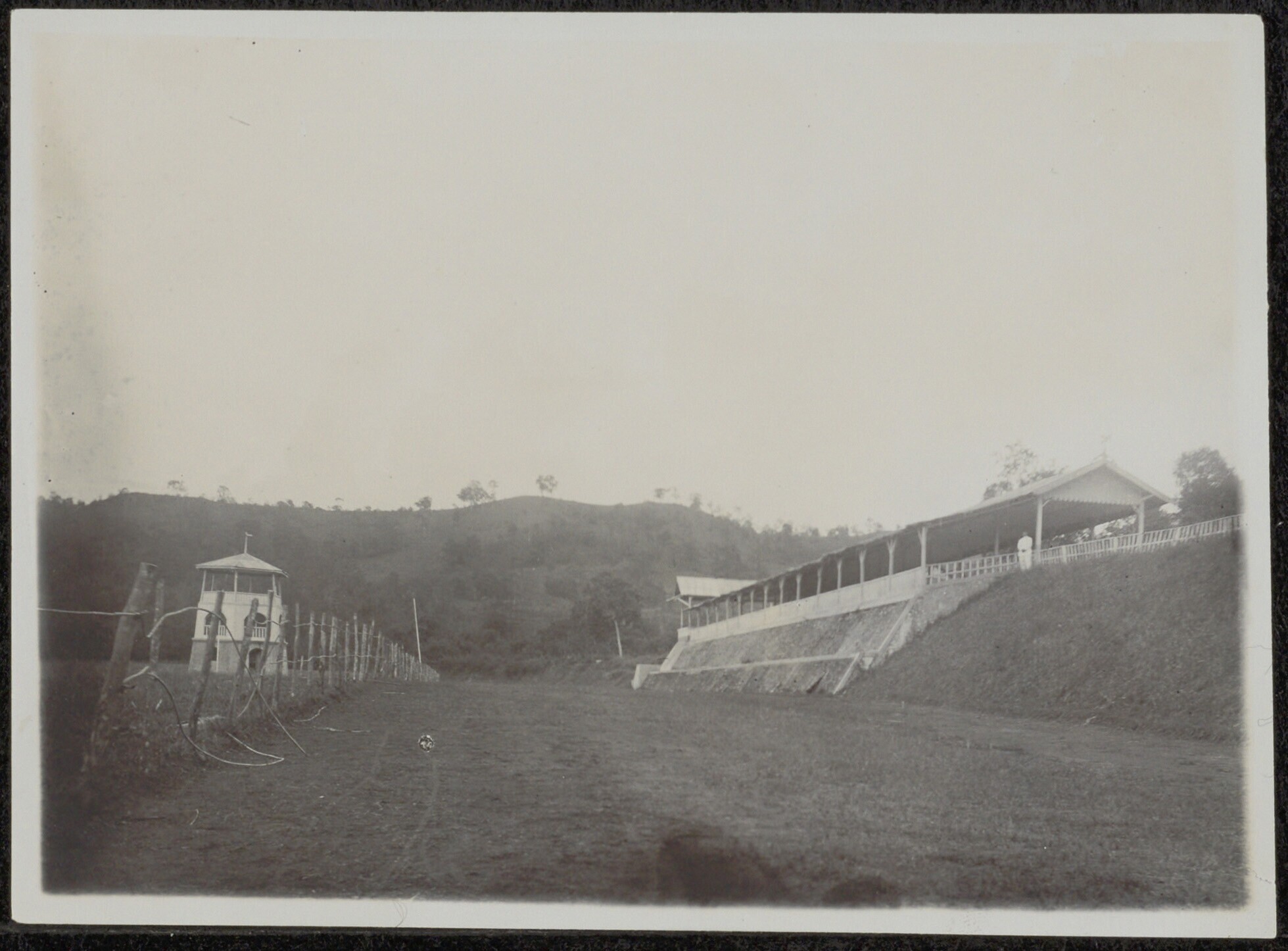 Gebouw, met bergen op de achtergrond