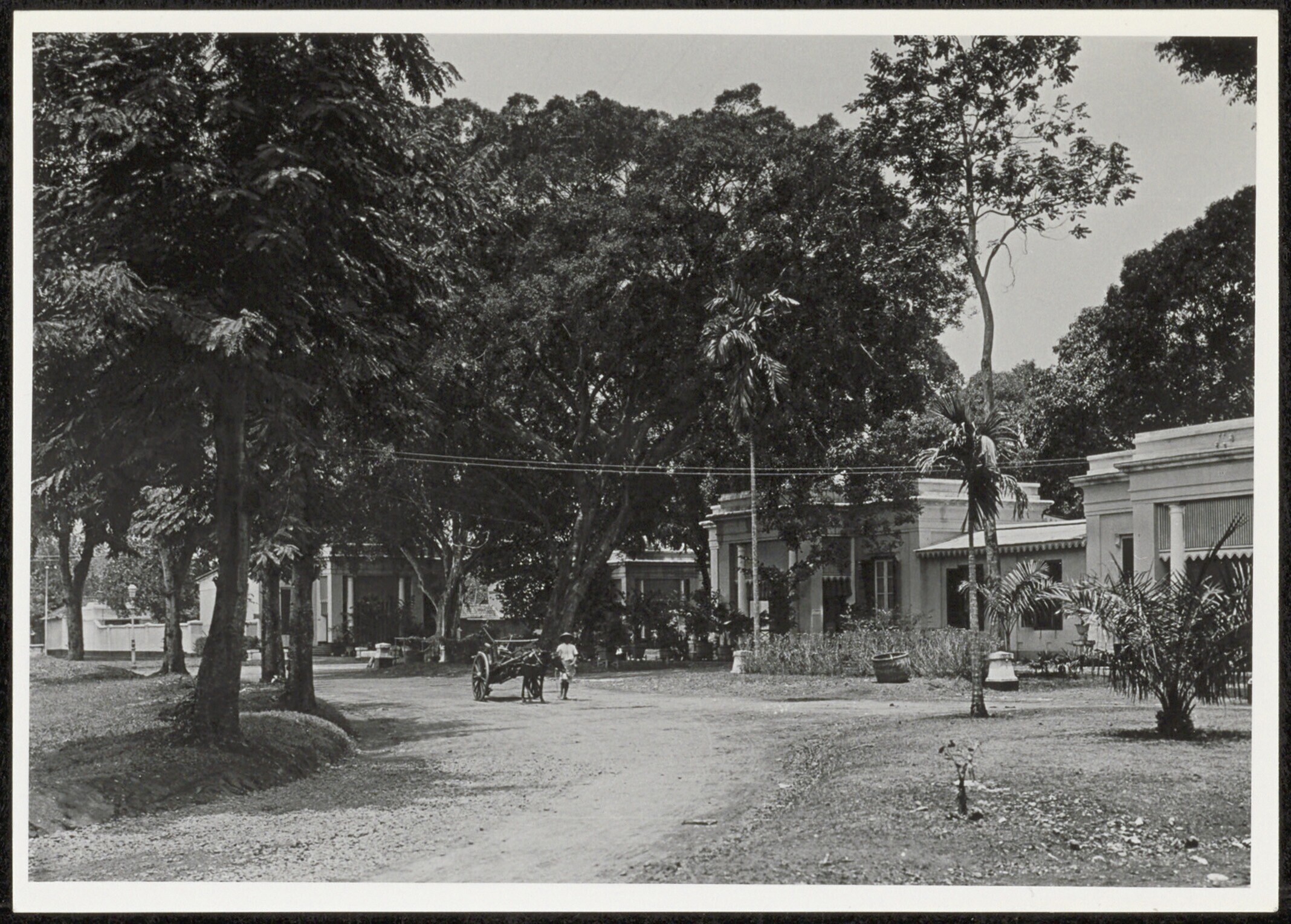 Straatgezicht met gebouwen en een rikshaw