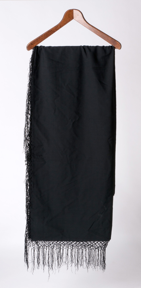 Omslagdoek van zwarte katoen met franje, afkomstig u...