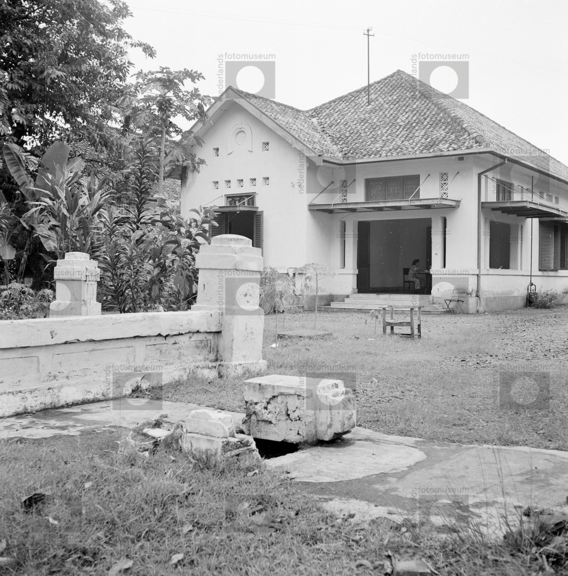 Overhoeks aanzicht van koloniaal gebouw te Jakarta, ...