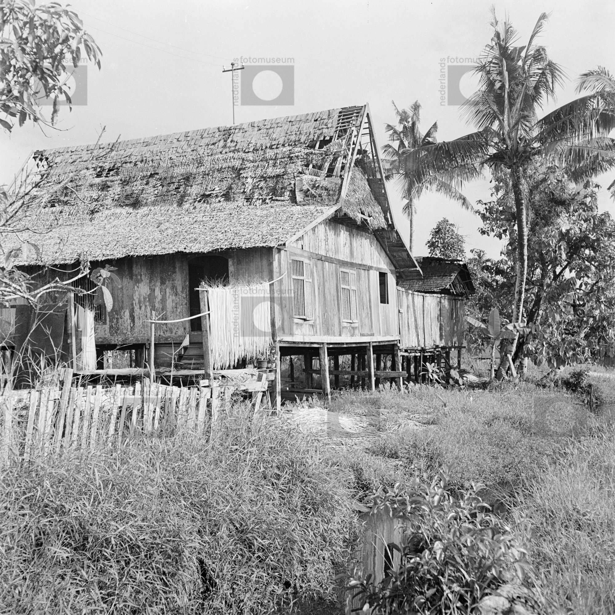 Overhoeks aanzicht van een inheemse paalwoning, Indo...