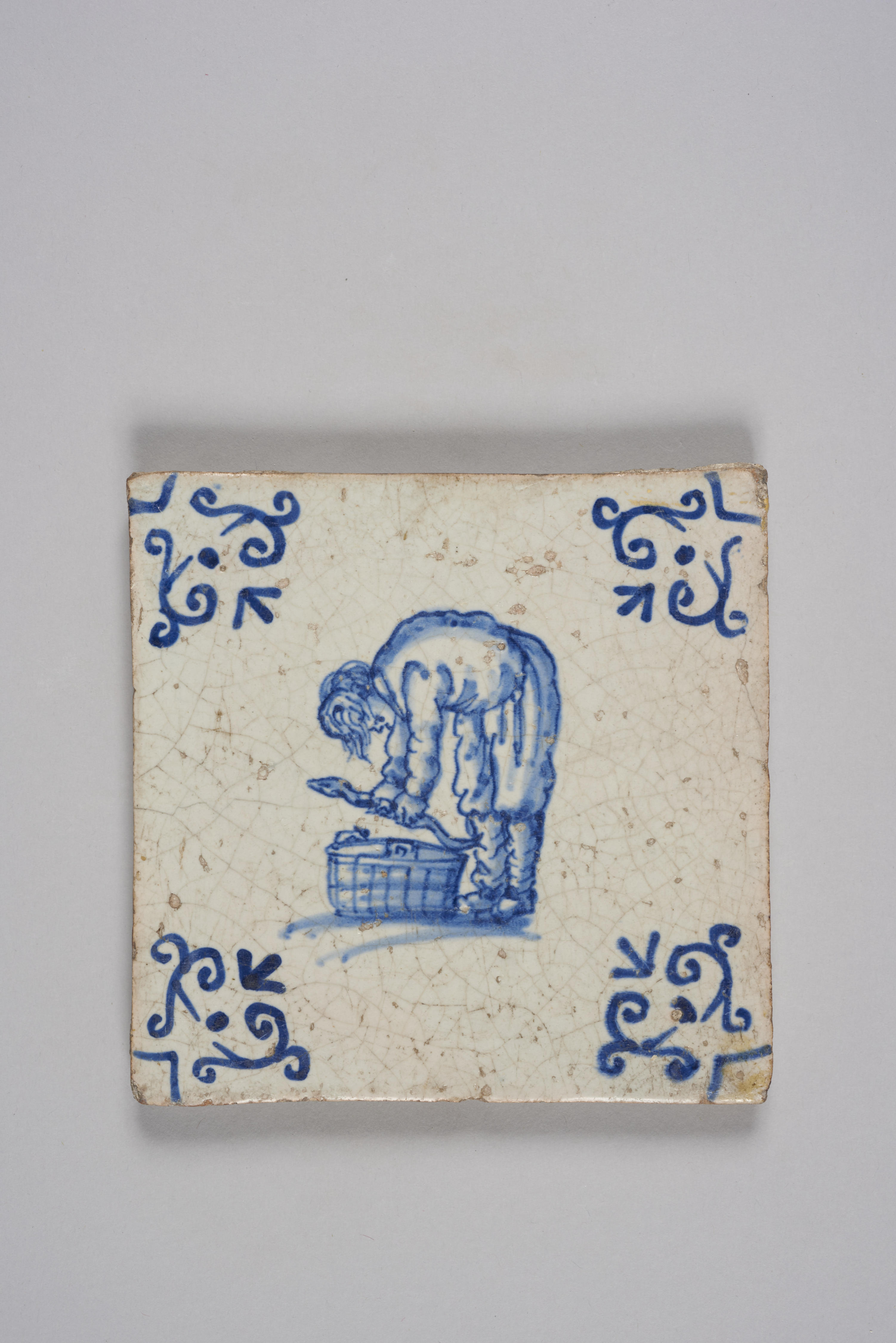 Wandtegel met afbeelding man met mand of korf, 1625–...