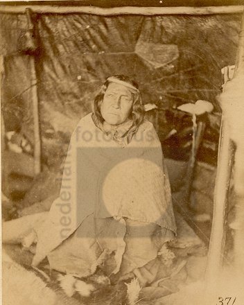 Tentinterieur met oude Tehuelche vrouw, Argentinië (...