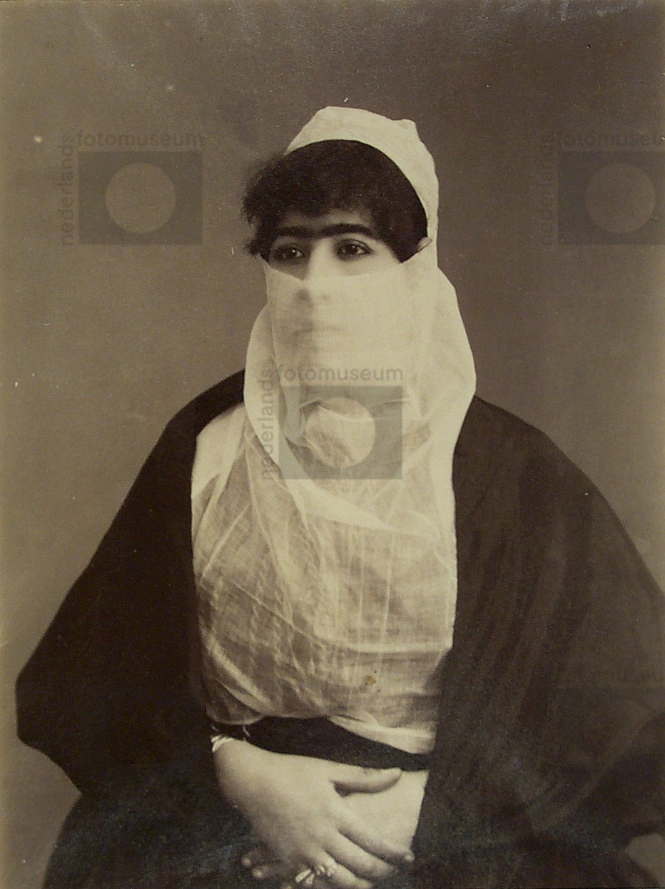 Portret van gesluierde Turkse vrouw, Egypte (1887-1894)