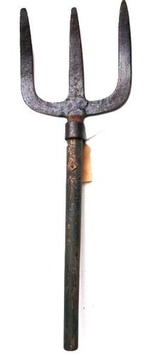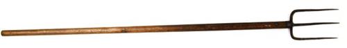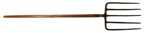 Koolzaadvork van metaal met houten steel gebruikt om...