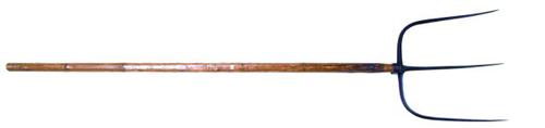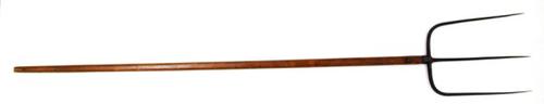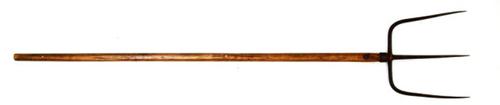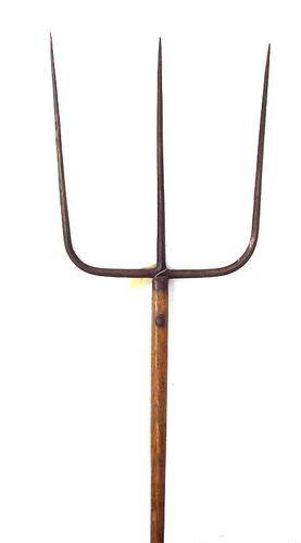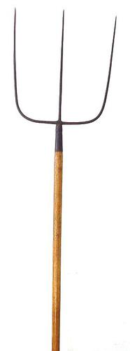 Hooivork van metaal en houten steel gebruikt om hooi...