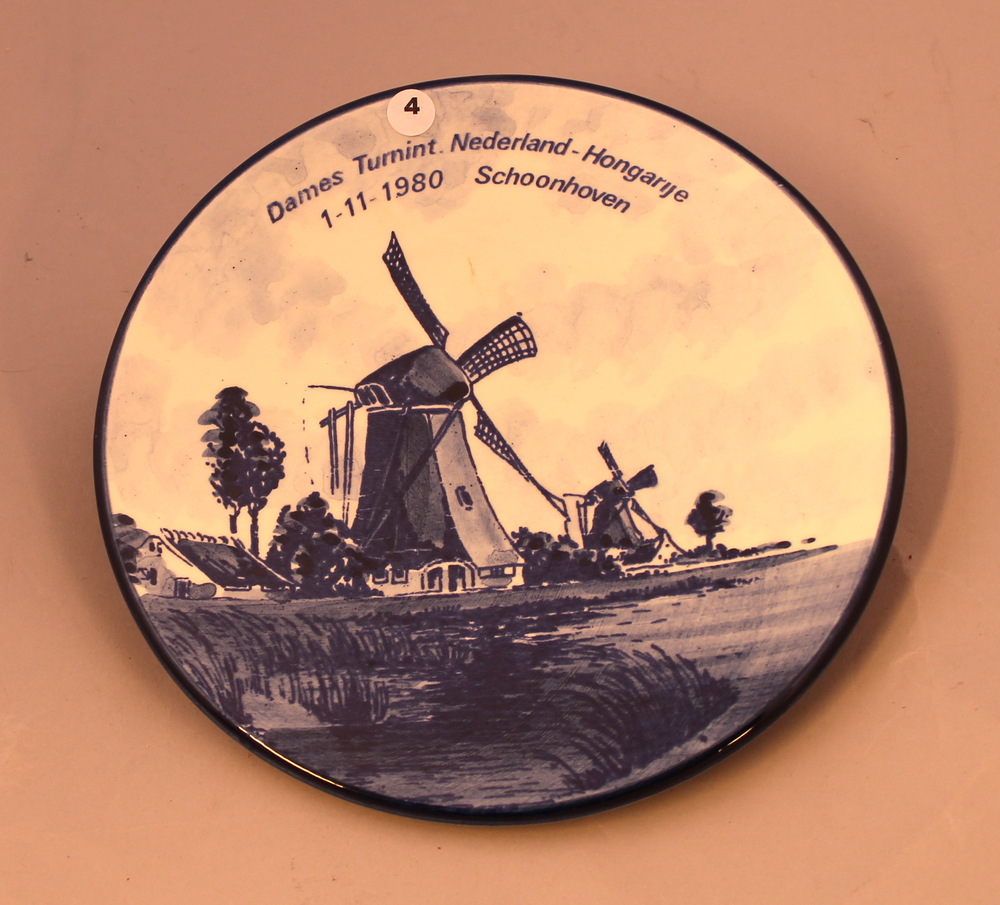 Wandbord Delfstblauw "Dames Turnint. Nederland - Hon...