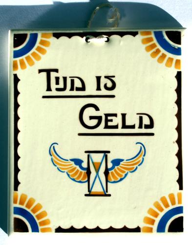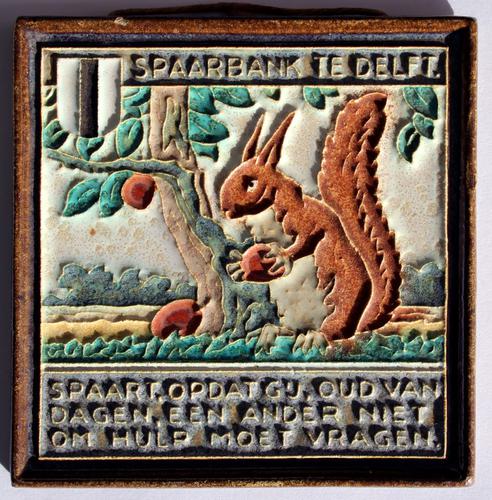 Vierkante cloisonné tegel. ‘Spaarbank te Delft’