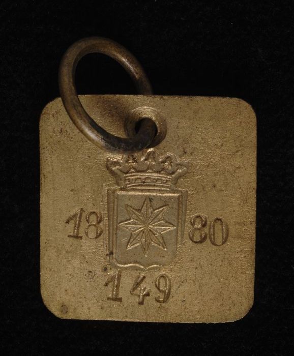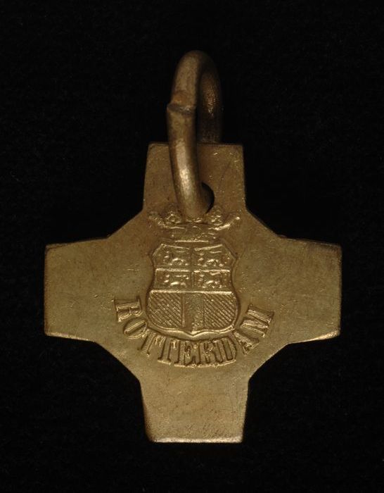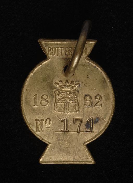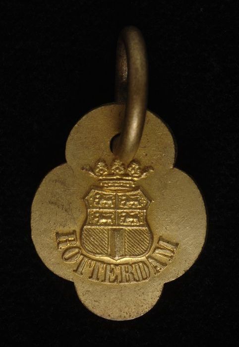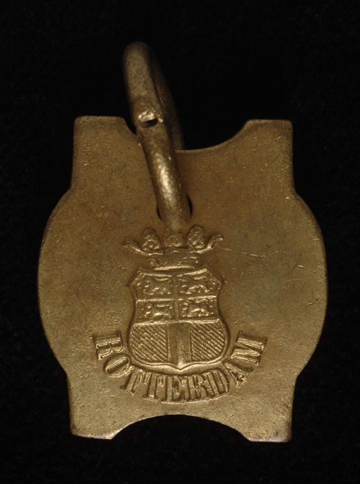 Geelkoperen penning van de hondenbelasting van Rotte...