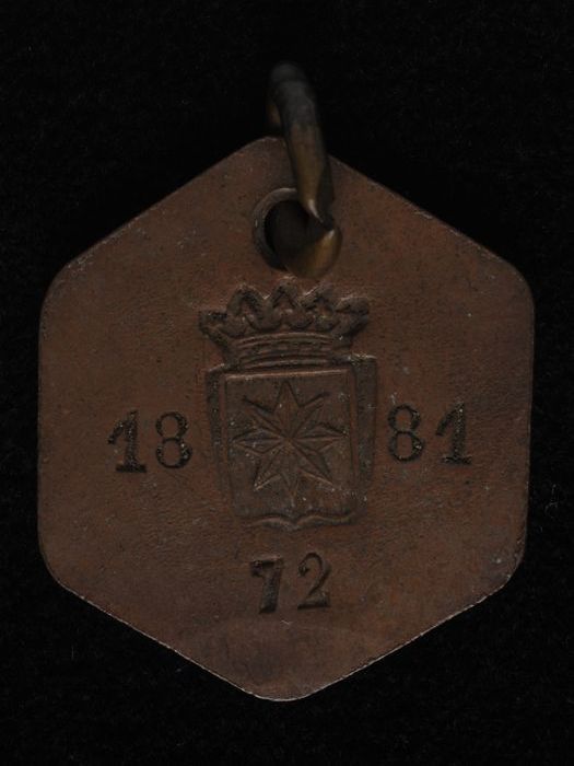 Roodkoperen penning van de hondenbelasting van Rotte...