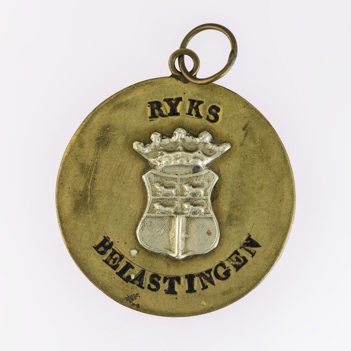 Brandweerpenning van de Rijksbelastingen, met wapen ...