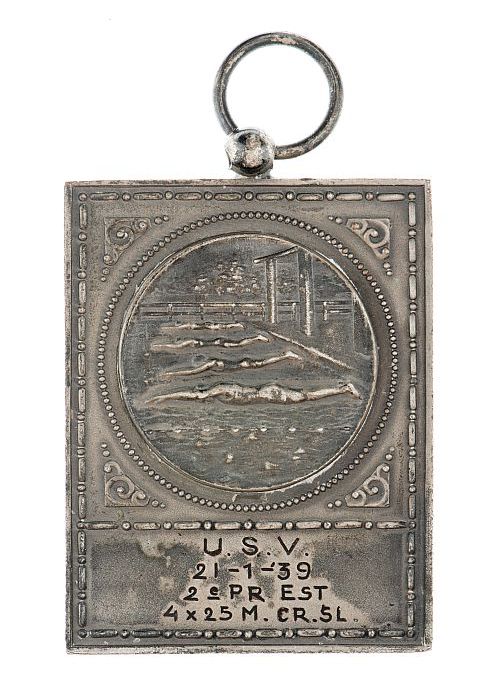 Medaille Van Nelle, zwemmen, met "U.S.V. 21-1-'39 2e...