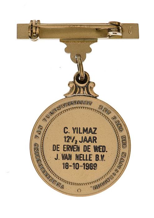 Goudkleurige penning van de Nederlandsche Maatschapp...