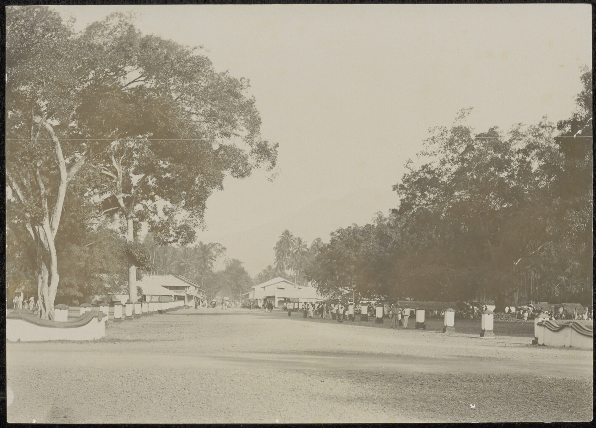 Straatgezicht in Fort de Kock met de vulkaan Merapi ...