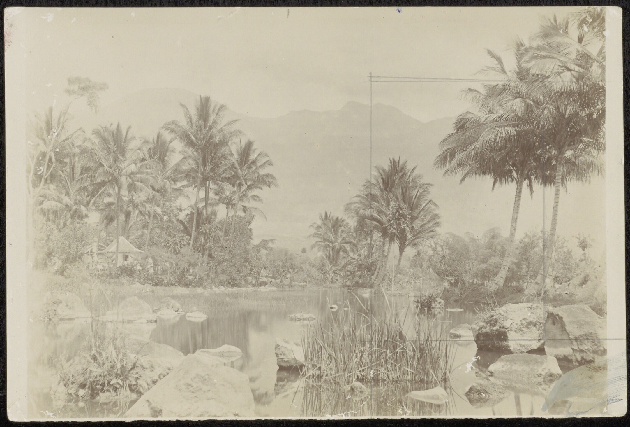 Gezicht op de Goenoeng Goentoer, met op de voorgrond...