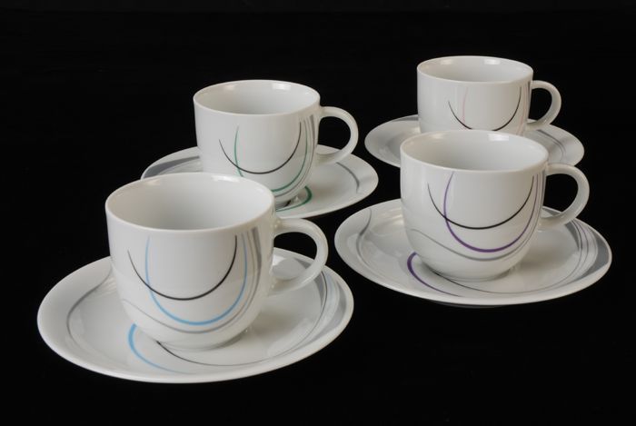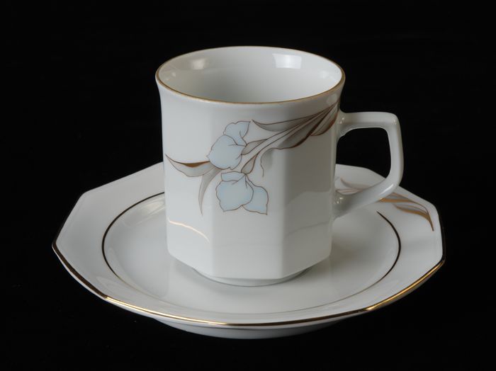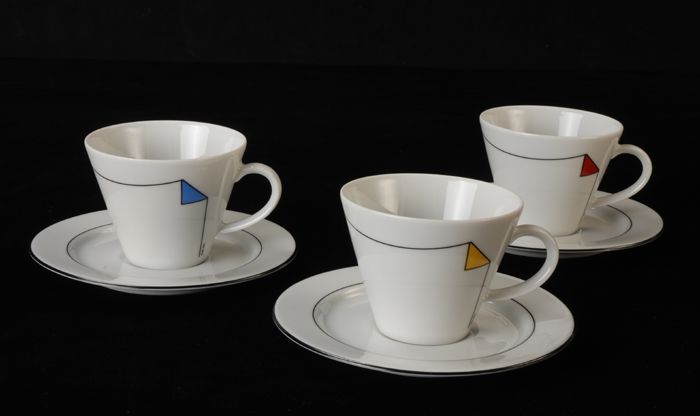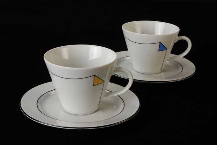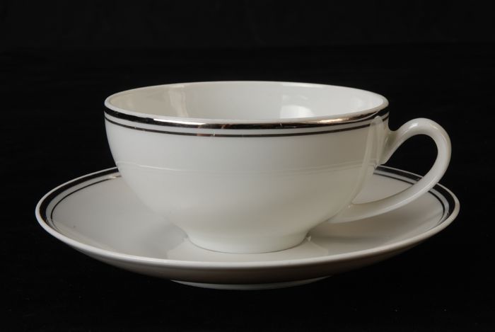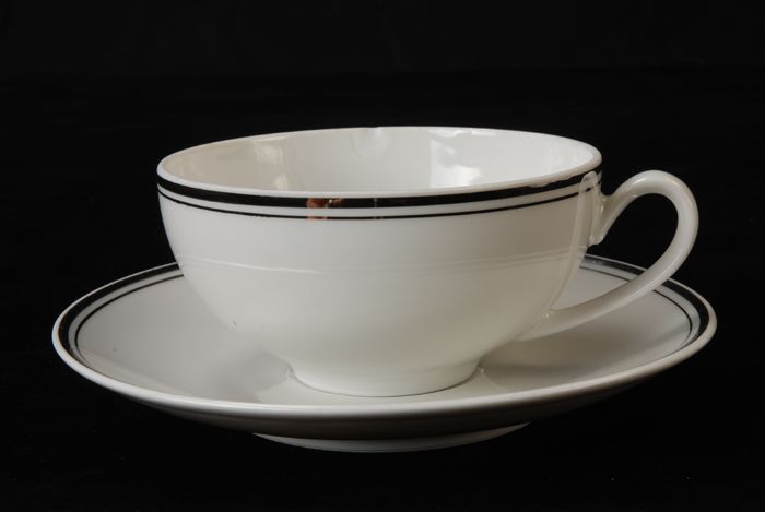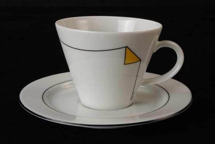 Kop en schotel van Van Nelle met zwarte lijn en gele...
