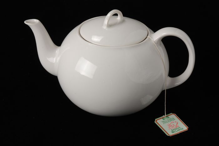 Theepot met deksel en theezakje van Van Nelle, 'Twee...