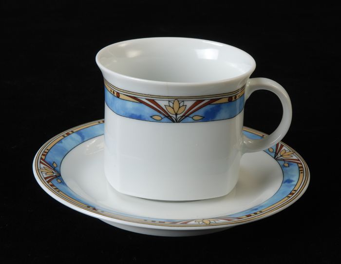 Kop en schotel van Van Nelle met zwarte lijn en blau...