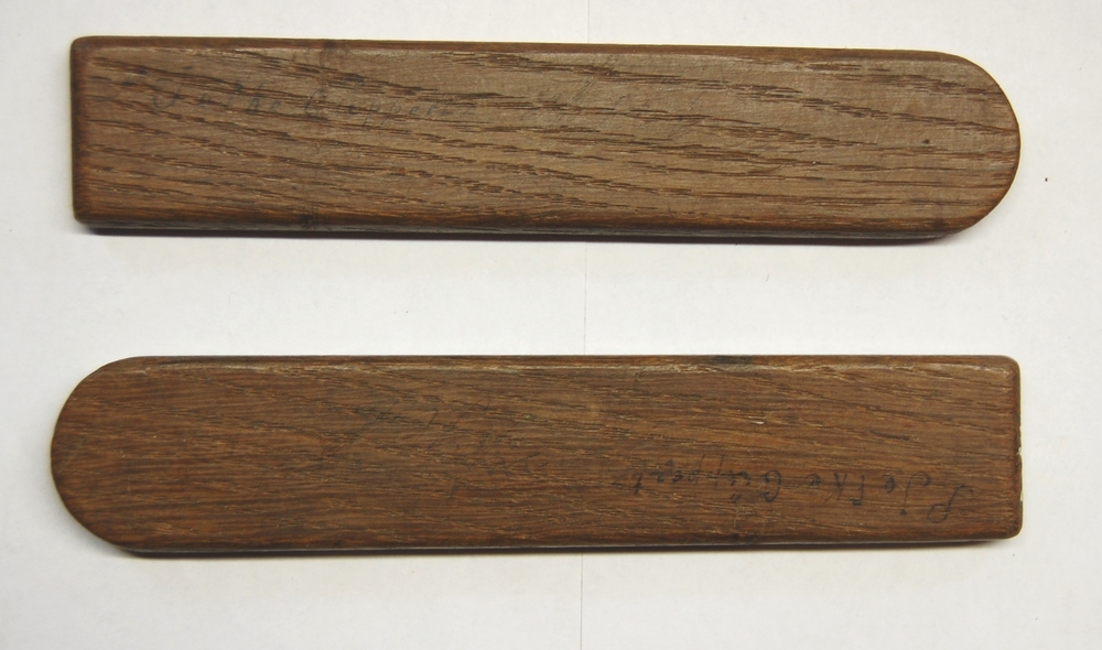 kleppers. Lange smalle eikenhouten stukjes aan het e...