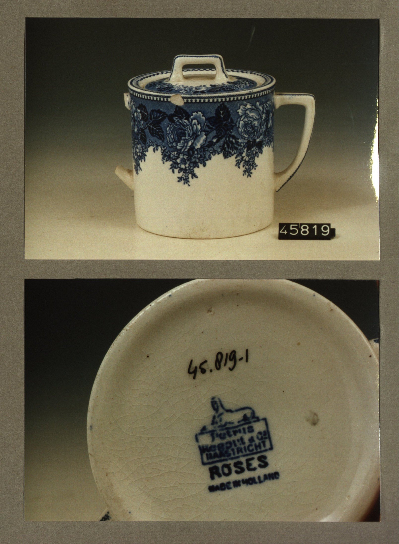 Suikerpot, model Relief met decor Chrijsantheme