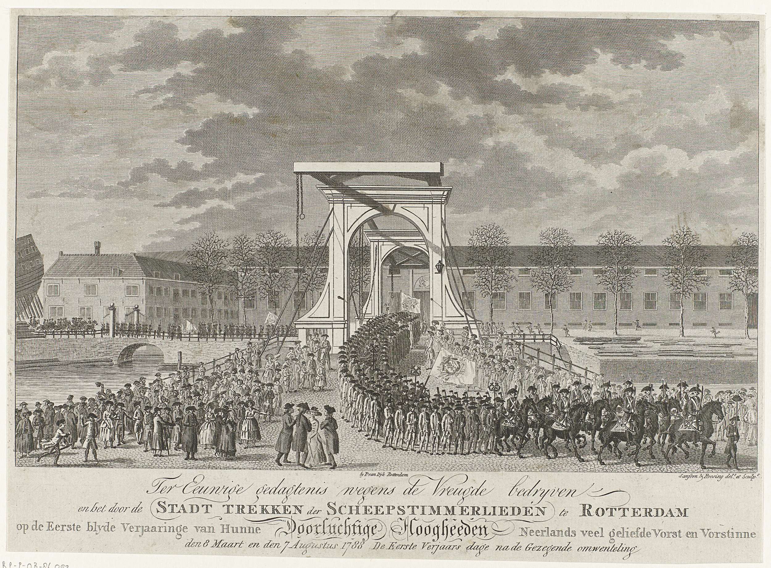 Optocht van de scheepstimmerlieden te Rotterdam, 1788