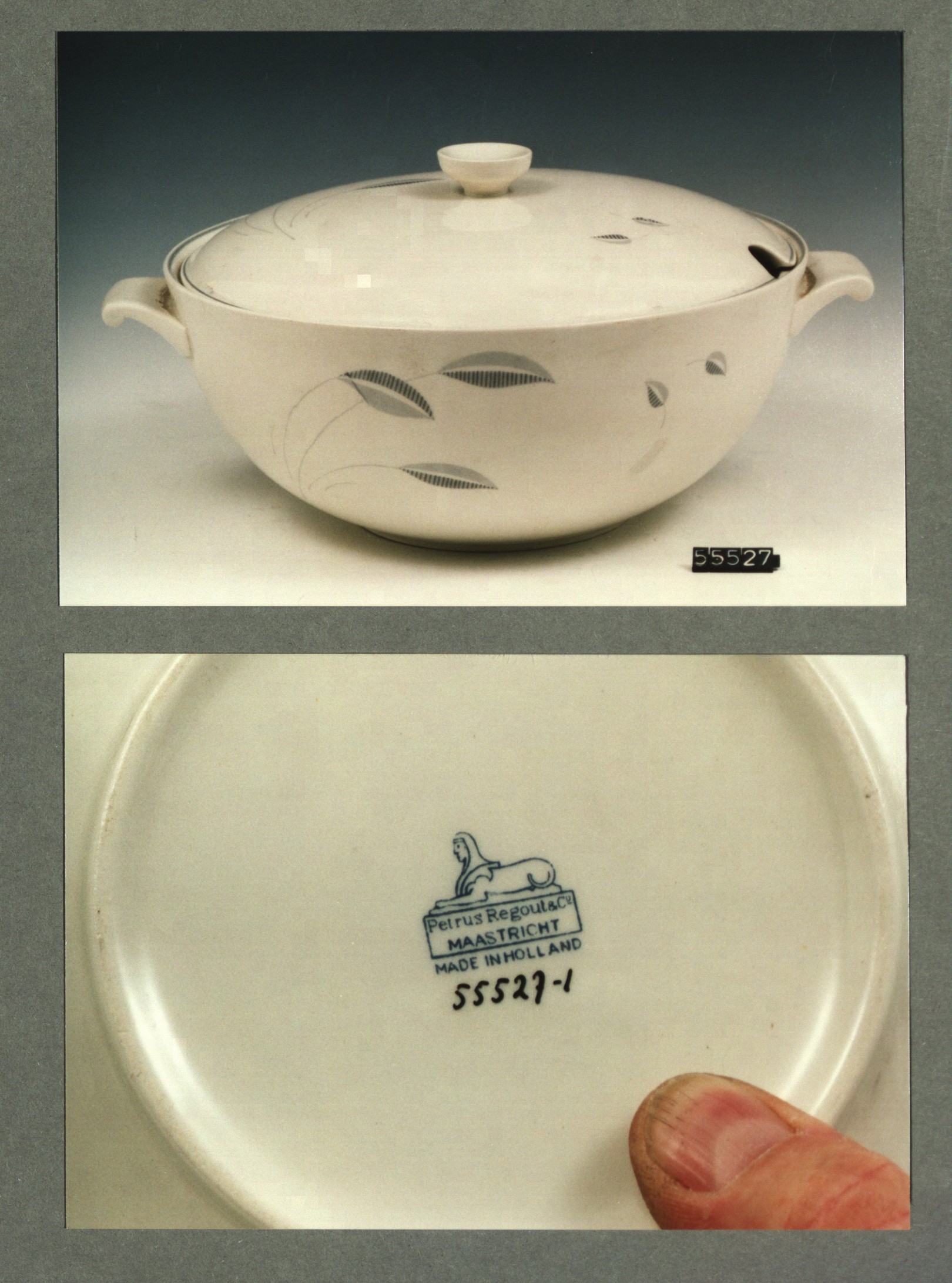 Soepterrine, model Sphinx met decor Grijs bladmotief