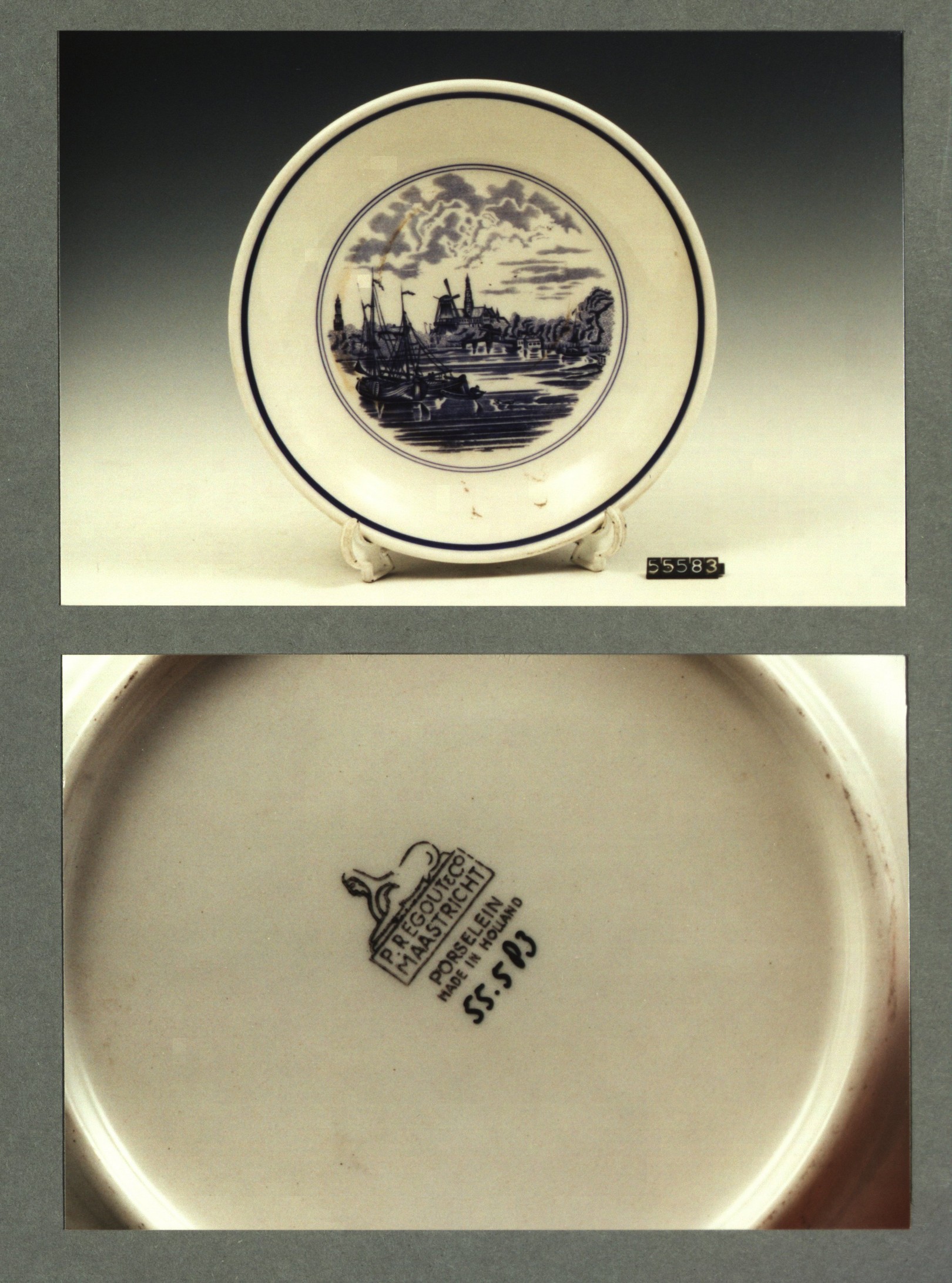 Plat bord, model H met decor Nederland Haarlem