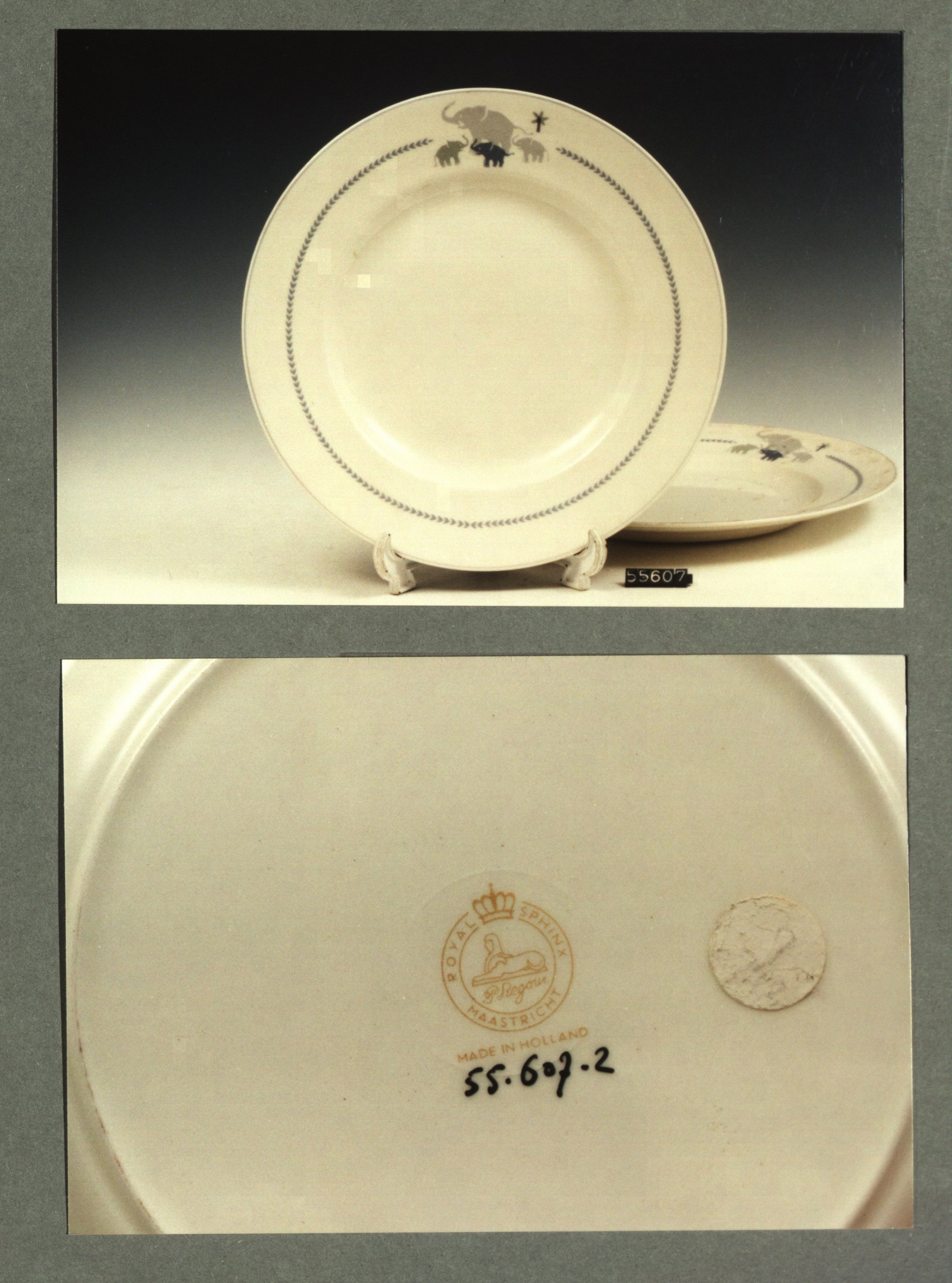 Plat bord, model Desiree met decor Olifantjes