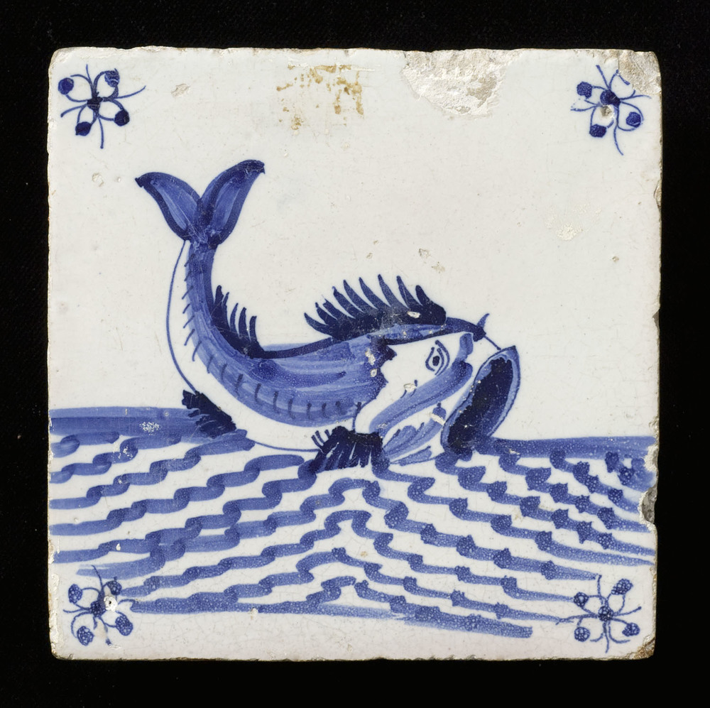Tegel van keramiek, tinglazuur, voorstellende een zo...