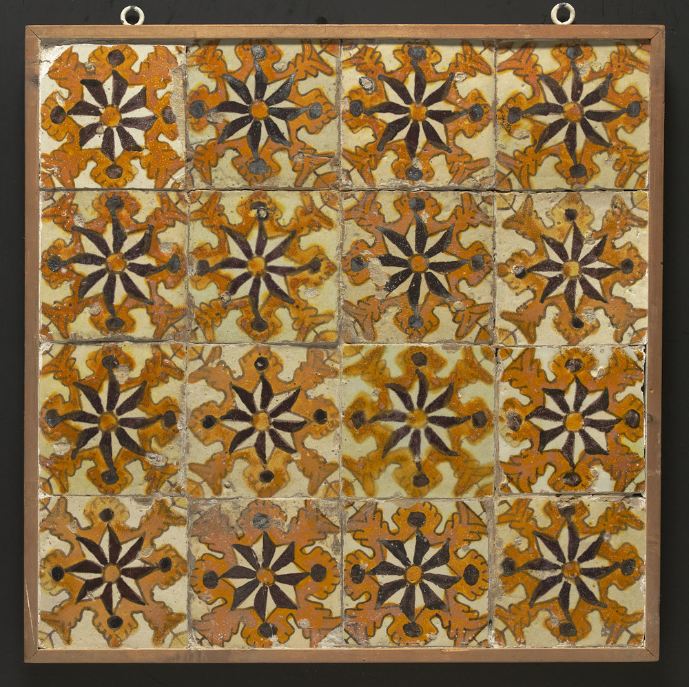 Tegelveld van keramiek, tinglazuur, voorstellende ee...