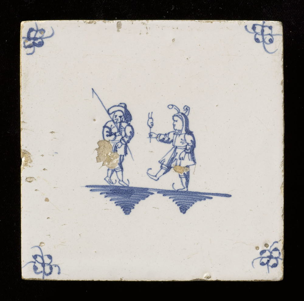 tegel van aardewerk met tinglazuur, voorstellende: h...