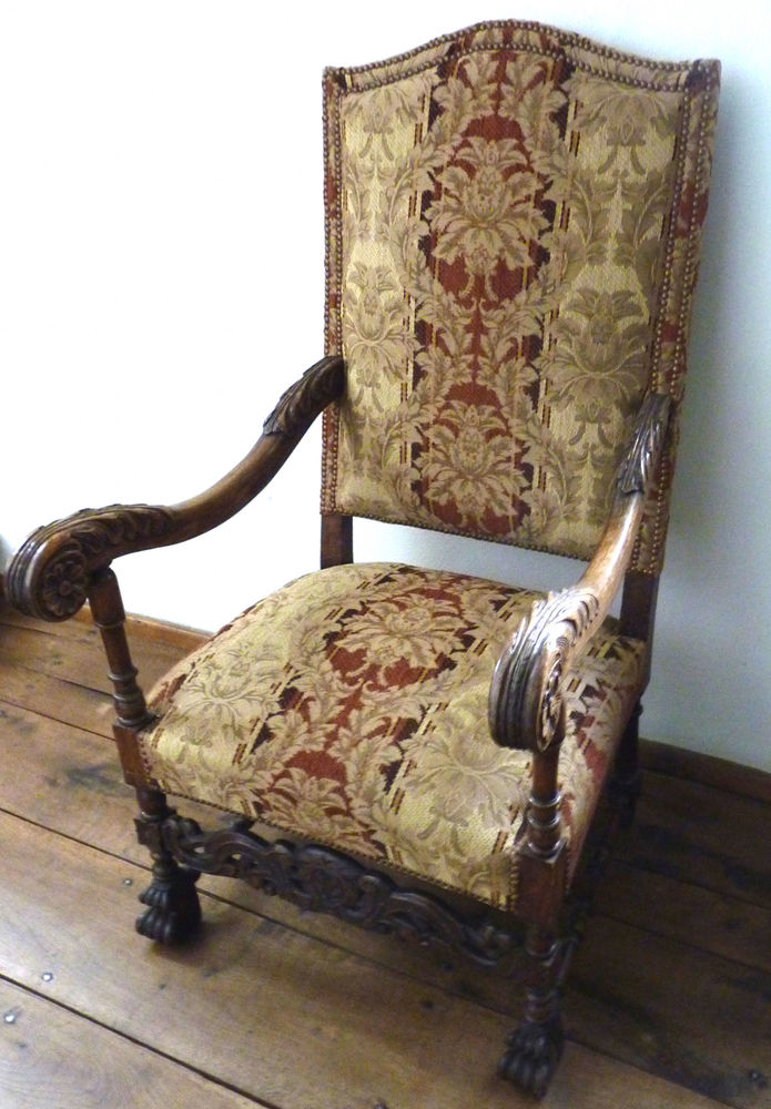 Armstoel "Hoge fauteuil" hout met textiel, rond 1900