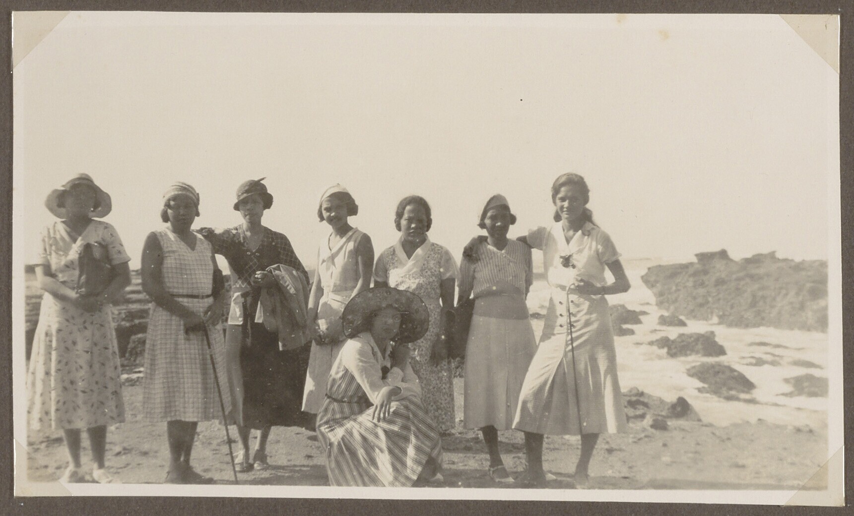 Groepsportret van vrouwen aan een strand