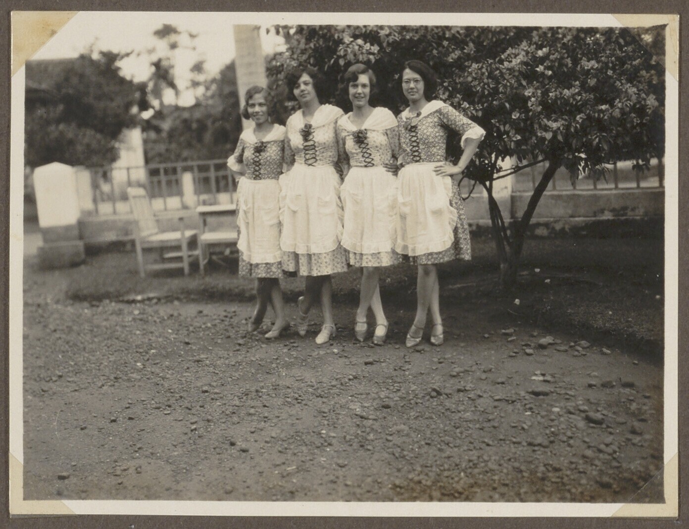 Groepsportret van vrouwen onder een boom