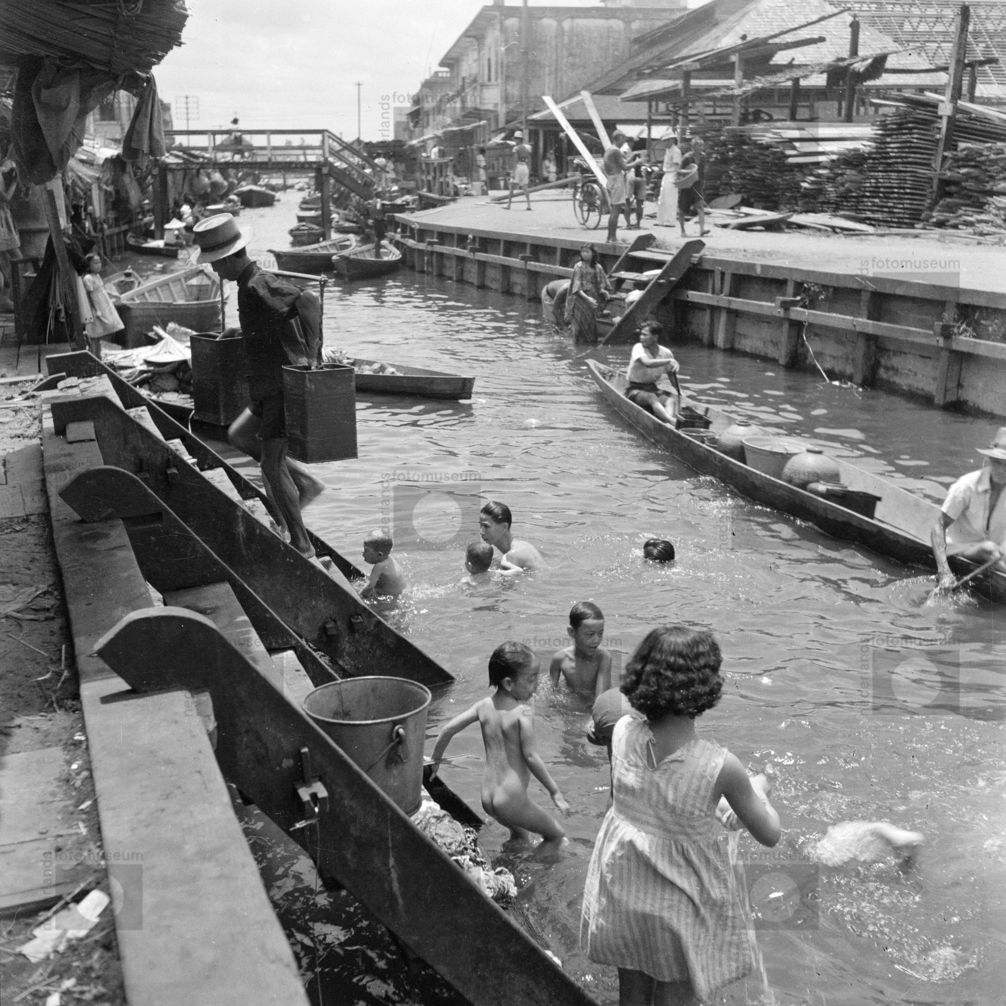 Stadskanaal in Pontianak op Borneo, Indonesië (1948)
