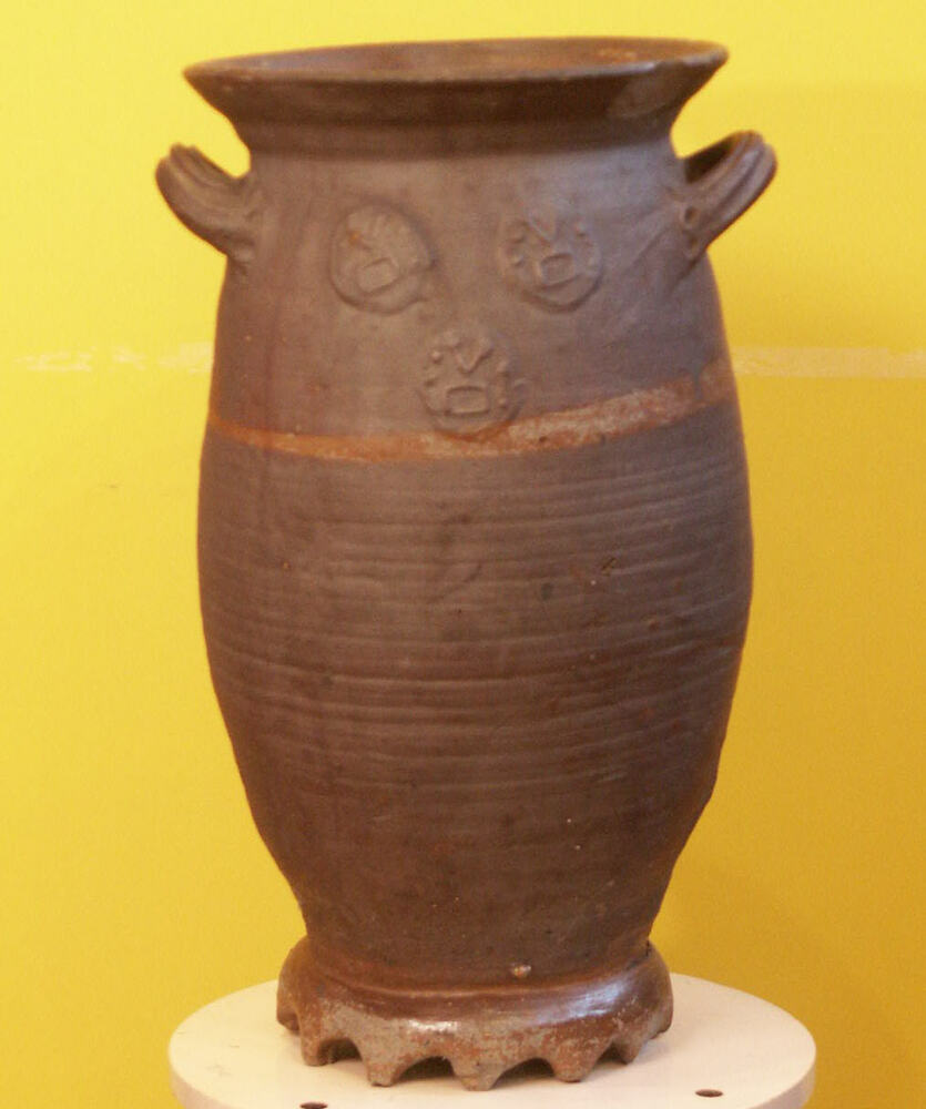 zuurkoolpot van bruin steengoed, 2e helft 19e eeuw