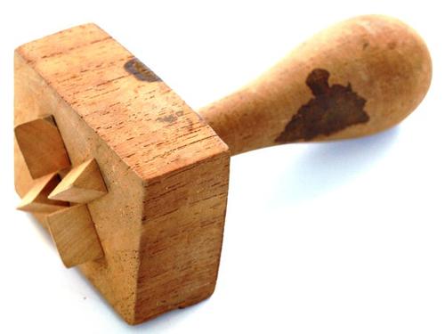 Boterstempel van hout gebruikt voor het aanbrengen v...
