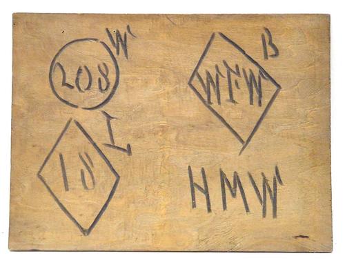 Ritsmerk van hout gebruikt als mal om initialen of m...